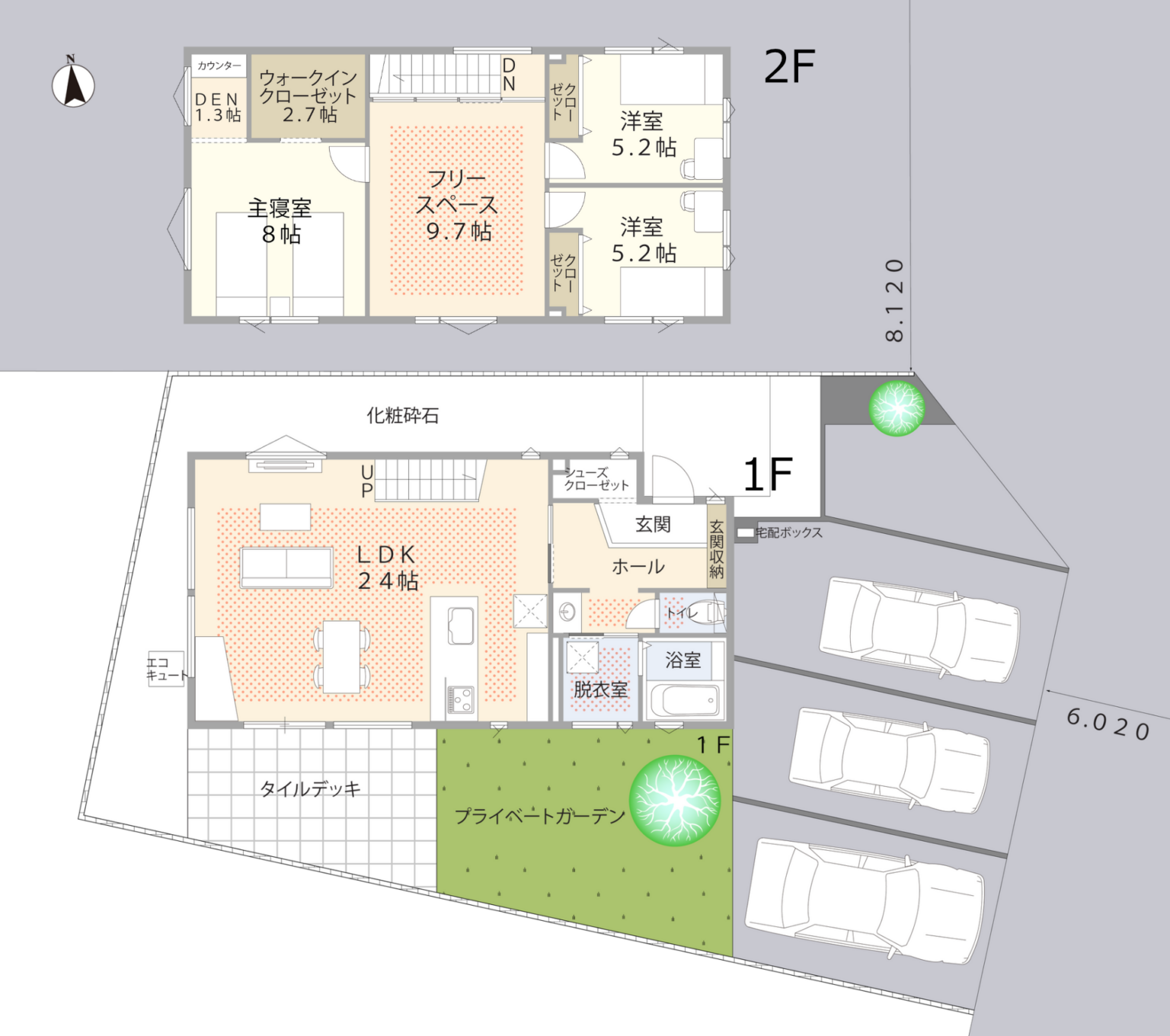 土地面積:204.44㎡ / 建物面積:117.8㎡