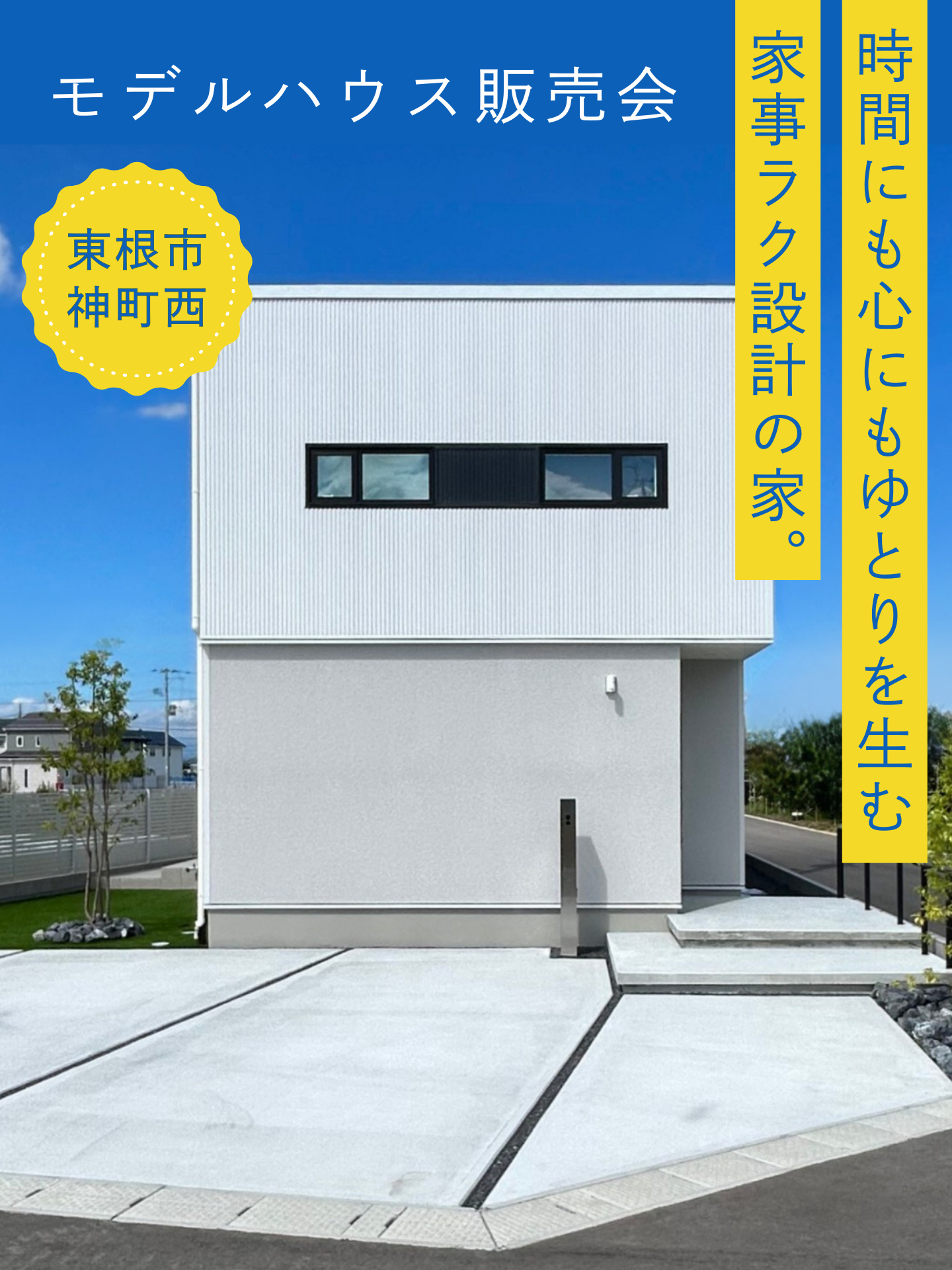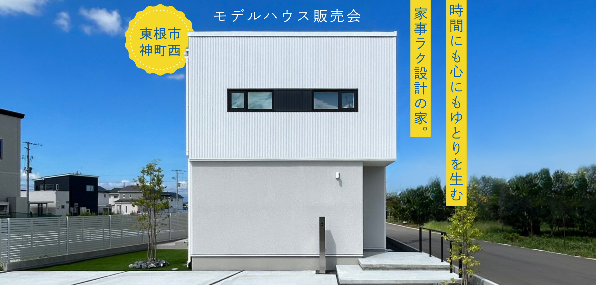 東根市神町西の新興住宅地に建てられた展示場を、家具も外構もそのままにそのままお譲りいたします。